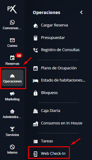 1- Desde el menú principal, buscar dentro de Operaciones, la aplicación Web Check-in y hacer clic para abrir la aplicación: