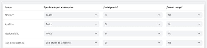 3- ¿Es obligatorio?: Si es un campo obligatorio o no a completar por el huésped, en el caso de ser obligatorio, si el huésped no lo completa no le permite finalizar el web check-in.