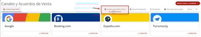 2- Dentro de Canales y Acuerdos de Ventas, seleccionar "Canales y Acuerdos Activos".