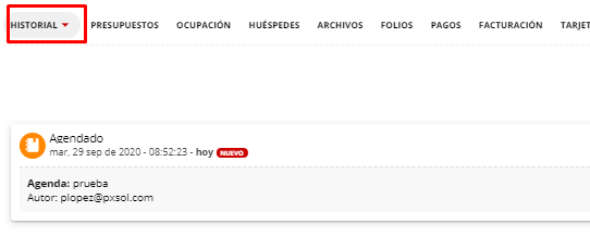 4 - En la solapa de Historial se observará el registro de la acción realizada.