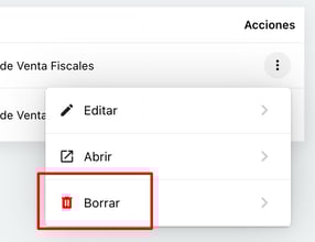 1- Dentro del informe que deseas borrar, hacer click en Acciones
