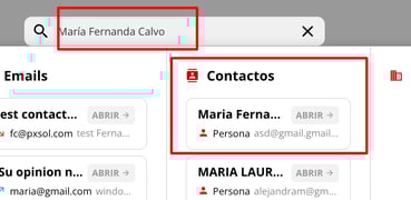 Para buscar un contacto, puede hacerlo directo desde el omnibox. El mismo aparecerá en la columna de Contactos