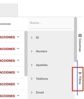 Tanto Filtros como columnas en el menú lateral de personalización aplica sobre la lista en la que está parado, recuerde siempre estar parado en la vista a la que corresponde ese contacto