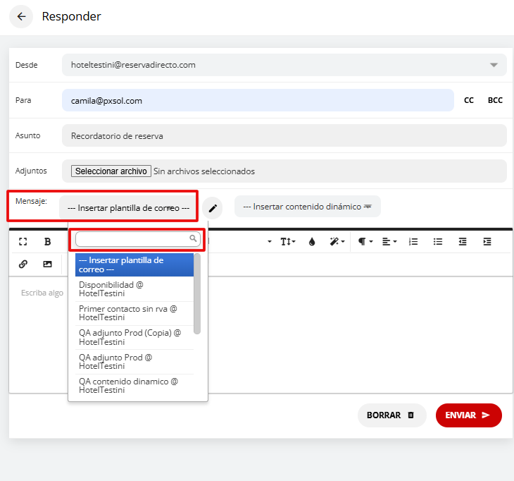 En esta guía te mostramos el paso a paso para enviar un correo al cliente utilizando las plantillas predefinidas desde el detalle de una reserva.