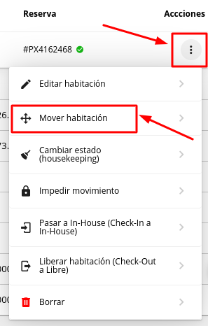 2- Seleccionar los 3 puntitos en la columna de acciones y Mover habitación