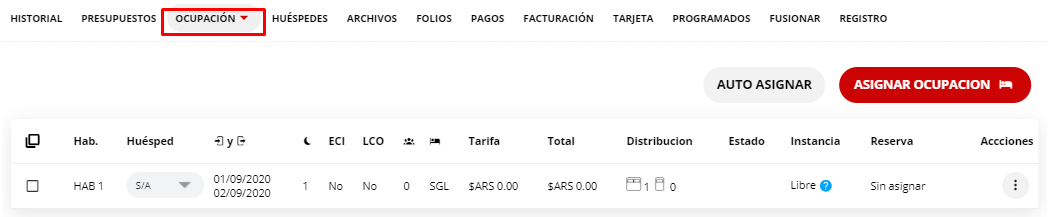 1- Ingresar a la reserva y posicionarse dentro de la pestaña “Ocupación”