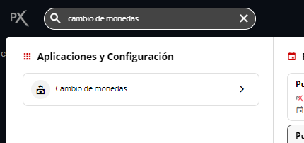 2- Escribir dentro del buscador Cambio y cliquear sobre la aplicación Cambio de monedas.