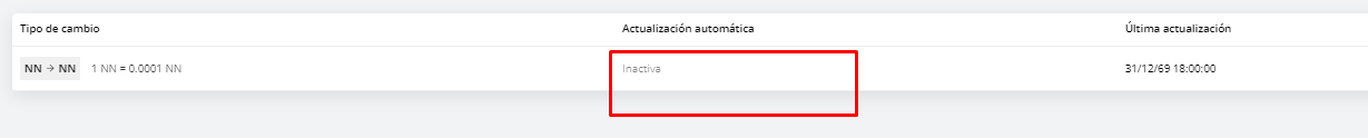 4- Para actualizar manualmente el tipo de cambio debe colocar la opción “inactivo” en el campo de "Actualización automática":