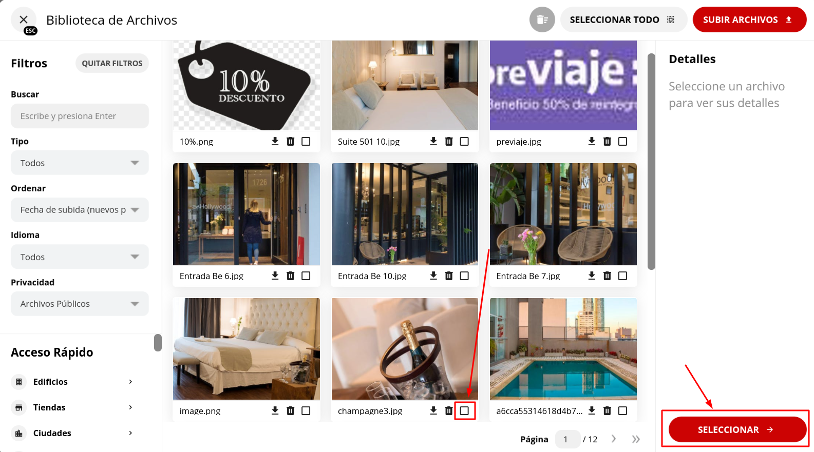 7- En el caso de no tener la foto en la biblioteca podrán cargarla desde Subir Archivos.