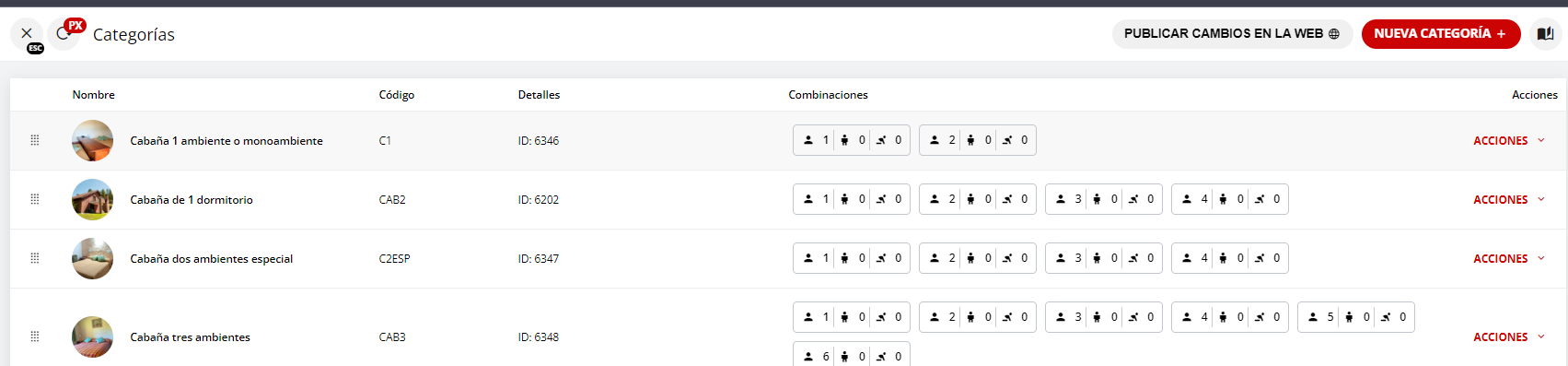 3- Aparecerá el listado de las habitaciones configuradas. Sobre la habitación que desea configurar, seleccionar el ícono de ACCIONES y luego EDITAR.
