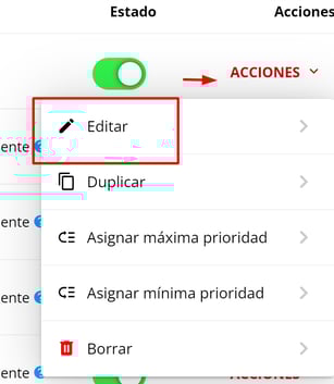 3- En el caso de que la Promoción o Voucher ya esté creado, deberá buscarlo en el listado que muestra la aplicación y seleccionar Editar en el menú de acciones de la derecha