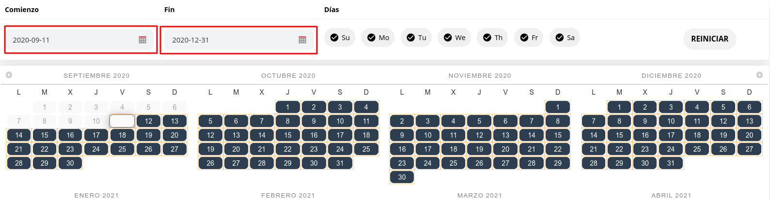 5- Seleccionar la fecha en la que deseamos modificar el estado de la promoción.