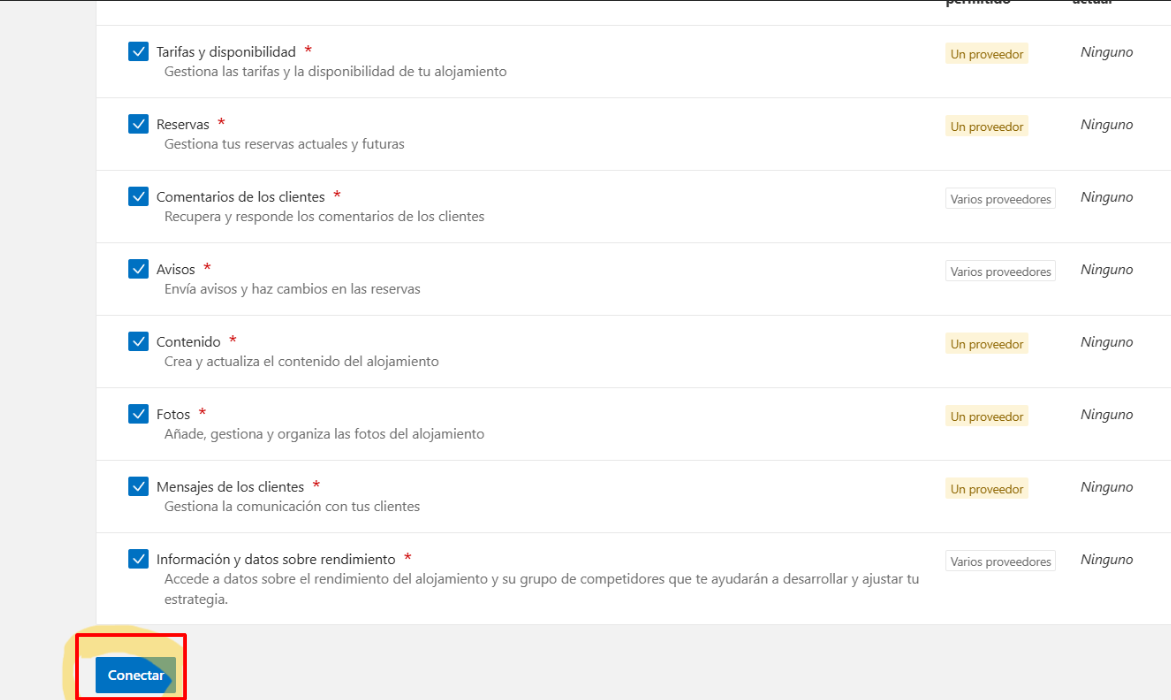 - Acepta los permisos requeridos y confirma la selección haciendo clic en "Conectar".
