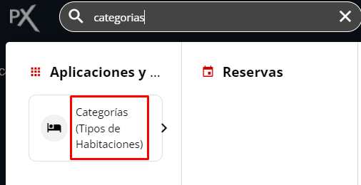 2- Escribir dentro del buscador Tipos de Habitaciones y cliquear sobre la aplicación Tipos de Habitaciones.