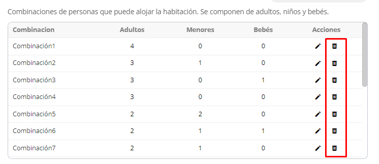 6- En el caso de que deseen eliminar alguna de las combinaciones, cliquear sobre el tachito que se encuentra en la combinación correspondiente.