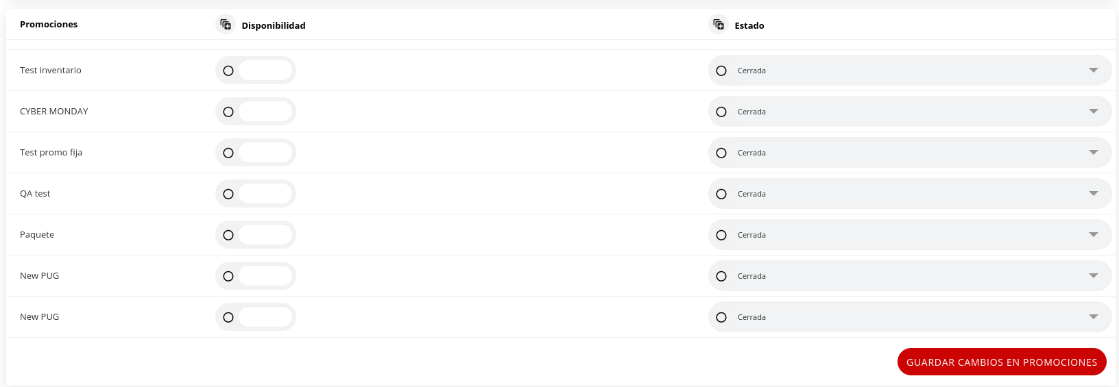 Cuando estén configuradas todas las promociones podrán editarlas, activarlas, desactivarlas, asignarles inventario, etc. desde Editar Tarifario por Rangos en la aplicación Tarifas y Disponibilidad.