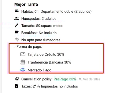 En las búsquedas de tarifas en el motor de reservas, podes visualizar el/los medio de pago creado: