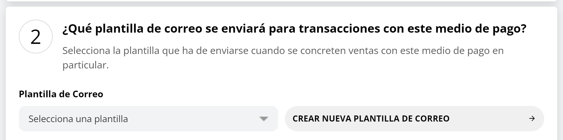Puede seleccionar una plantilla que ya tenga creada o puede crear desde este mismo apartado una plantilla para este medio de pago (cómo configurar una plantilla E-Commerce).
