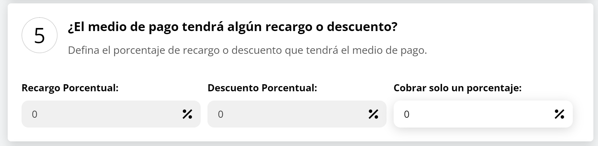 5- Definir si este medio de pago tendrá algún tipo de descuento o recargo.