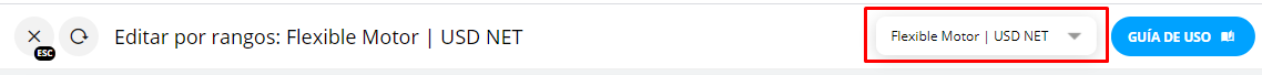 4- Seleccionar la opción de Editar Tarifario por Rangos, la cual puede abrirse en una nueva pestaña o en la misma ventana.