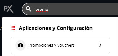 1 - Desde el buscador se deberá ingresar a la aplicación "Promociones y Vouchers".