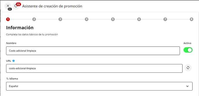 - URL de la promoción: se rellenará de forma automática al ingresar el nombre; sin embargo, tienen la opción de modificarlo si así lo desean.