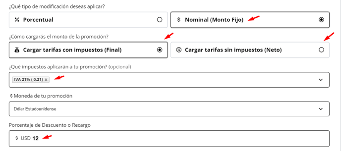 B - Si opta por la opción "Nominal (Monto Fijo)", será necesario completar los siguientes campos: