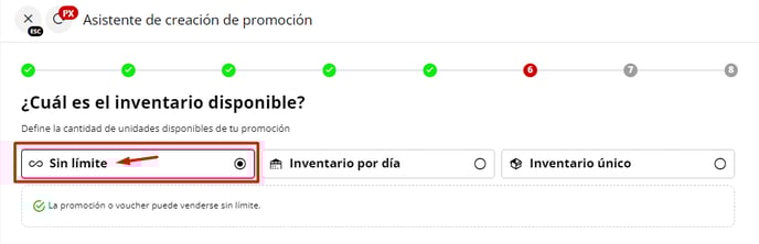 6 - En este paso, es importante seleccionar la opción "Sin límite" para garantizar que el recargo fijo sea aplicable en cualquier momento.