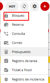 - Cliquear el ícono + que se encuentra en la parte superior derecha, y luego "bloqueo".