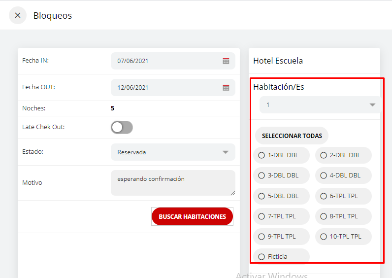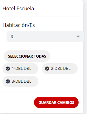 - Seleccionar la cantidad de habitaciones que se bloquearán y los números de las mismas. Posteriormente, seleccionar "guardar cambios".