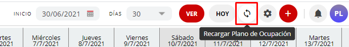 - Una vez creado el bloqueo, recomendamos cliquear el ícono de recargar plano de ocupación, a fin de que se actualice correctamente la disponibilidad para dicho día: