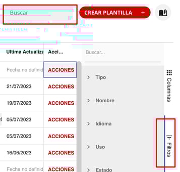2- Una vez que ingresaron en la lista, buscar la plantilla que desea borrar desde el buscador de aplicación o filtrando desde el menú lateral Filtros