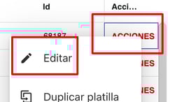 4- Aparecerá, en el listado de plantillas, una idéntica a la que duplicamos indicando que es copia. Nuevamente ir en la nueva plantilla al menú de acciones y Editar la plantilla clonada siguiendo los pasos de las guías a continuación