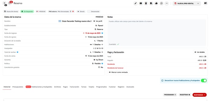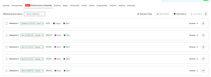 3- Nos aparecerán todas las habitaciones asignadas a esta reserva
