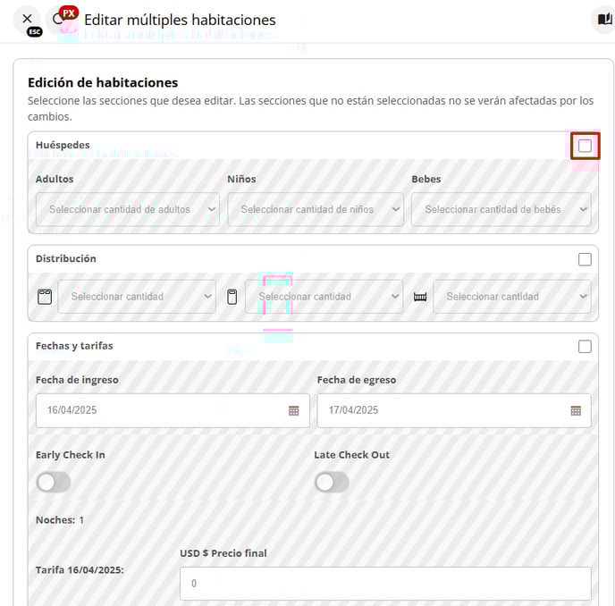 ¿Cómo editar varias habitaciones a la vez en una reserva?