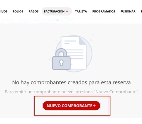 1- Dentro de la reserva, ingresar a la pestaña de FACTURACIÓN y hacer click en NUEVO COMPROBANTE +