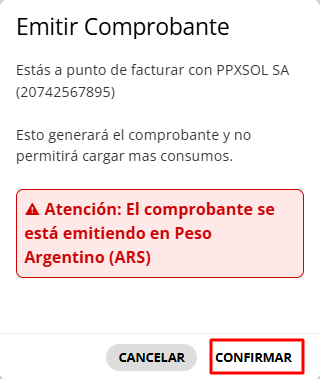 Emitir Comprobante: Abre una ventana de confirmación y luego, al confirmar, se emite el comprobante.