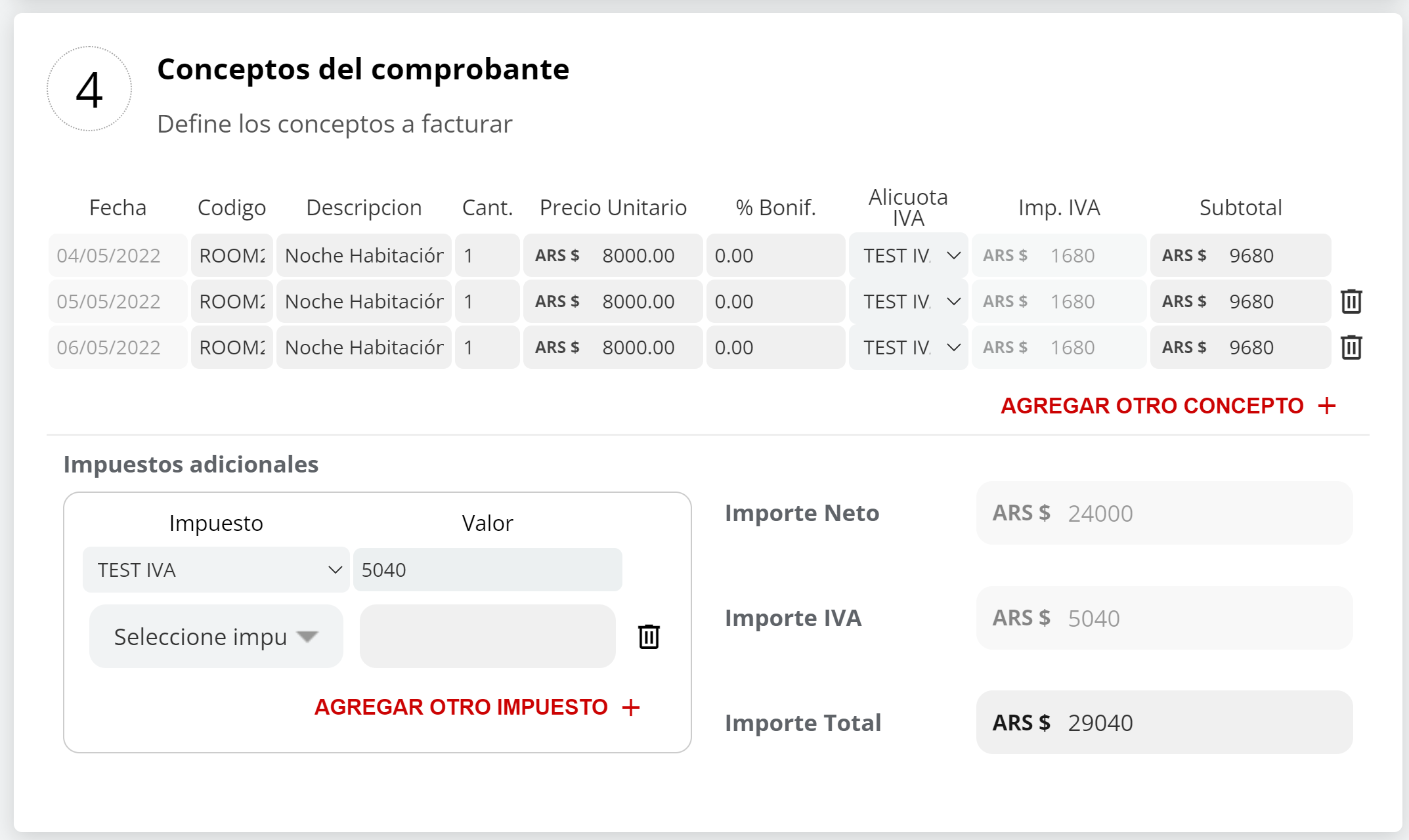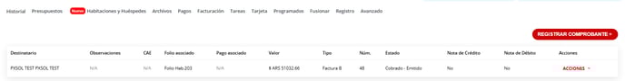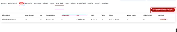 En caso de que ya existan facturas para esta reserva, podrán emitir un nuevo comprobante desde Registrar Comprobante +: