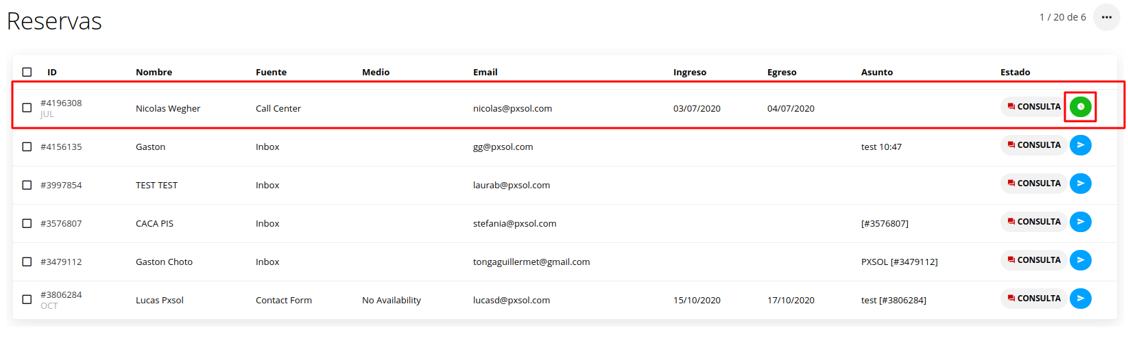 2- Al ingresar en la misma vamos a encontrar el detalle de la lista de todas las consultas que se encuentran en esta instancia, colocando en la parte superior en color verde aquellas que estén pendientes de acción, como la que acabamos de crear