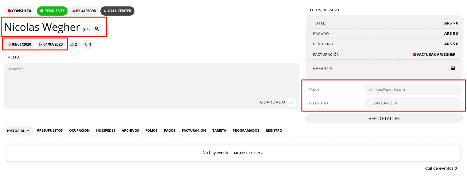 3- Ingresar en la consulta. Dentro de la misma podremos ver el nombre del huésped, la fecha de consulta, su correo electrónico y teléfono. Todo lo que hayamos registrado en el proceso de consulta