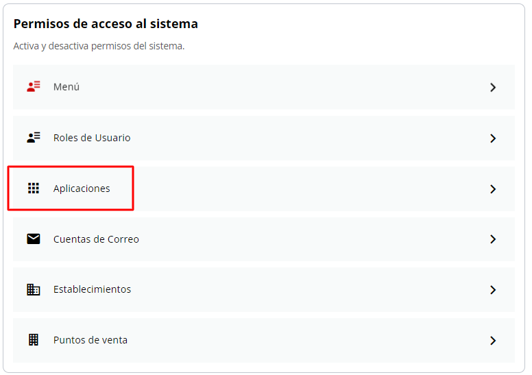 La habilitación de aplicaciones para un usuario, sólo la puede realizar un usuario que cuenta con permiso de administrador