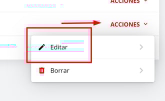2- En el listado de usuarios que aparece, abrir haciendo click el menú de acciones que aparece a la derecha del usuario al que quiera editar y seleccionar la opción Editar