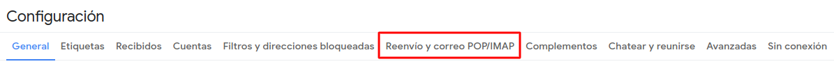 5- Seleccionar la pestaña Reenvío y correo POP/IMAP.