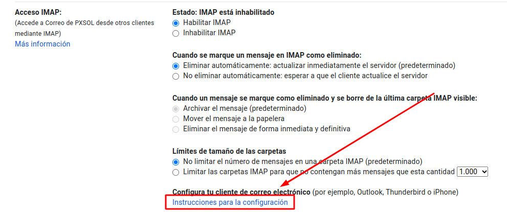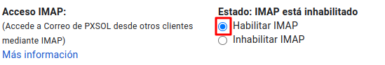 6- Dentro de Acceso IMAP seleccionar la opción Habilitar IMAP.