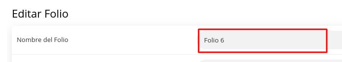 4- Aparecerán campos para editar. En Nombre del folio colocar el nombre que desea