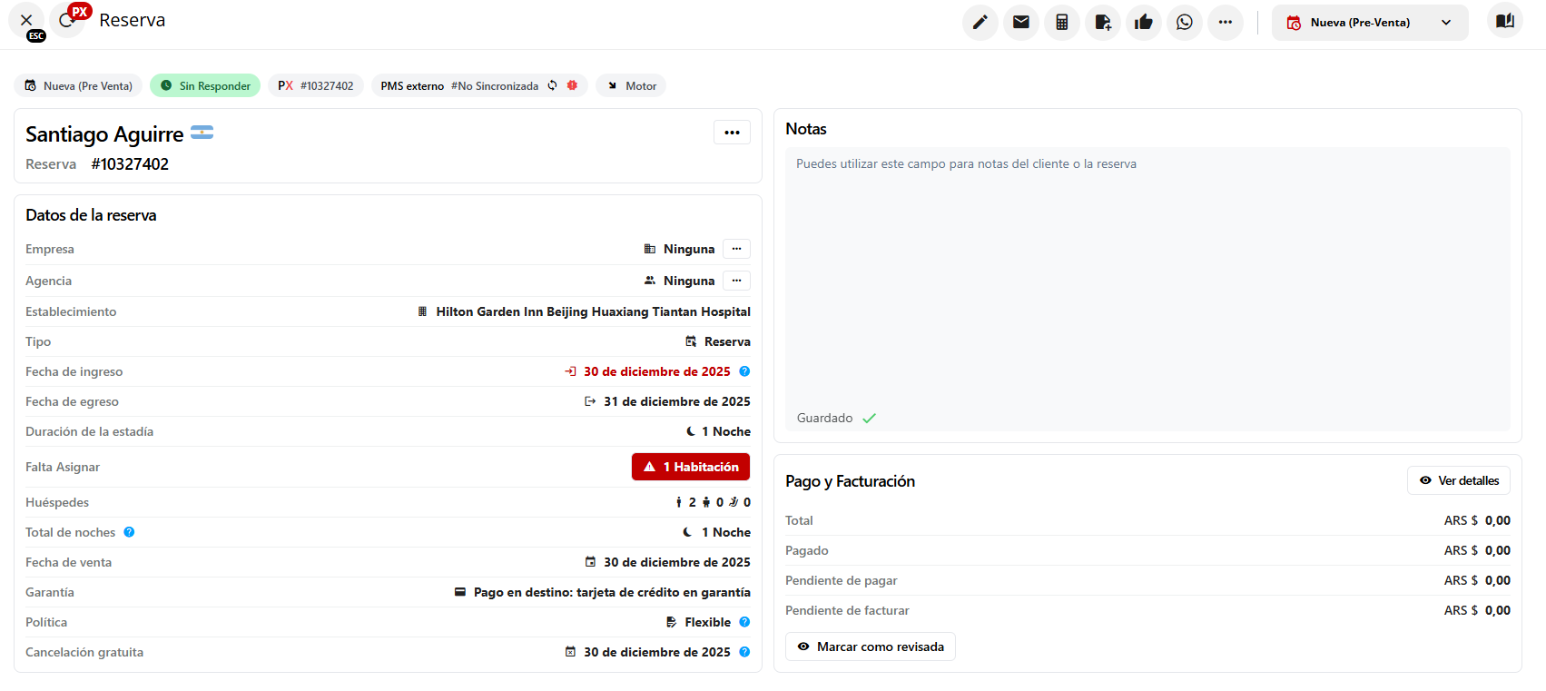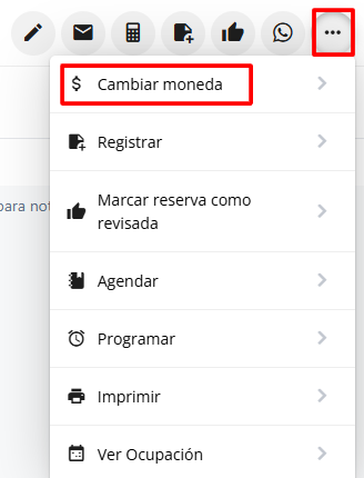 2- En la parte superior derecha, dentro de la reserva, seleccionar el ícono de los 3 puntitos y luego cambiar moneda: