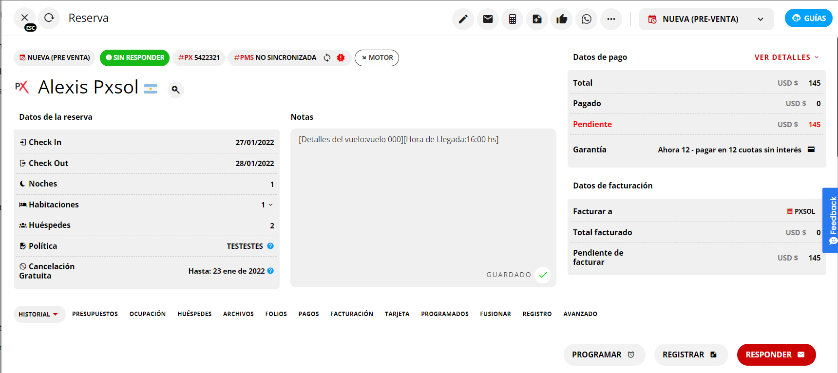 NOTA: Los movimientos que permite la reserva dependerá de la instancia en la que se encuentre y se podrá avanzar o retroceder a instancias inmediatas posteriores (color verde) o anteriores (color anaranjado). Por ejemplo: si se quiere pasar una reserva de Lista de espera a Venta, deberá pasar primero a la instancia Preventa y luego a Venta; de igual manera si precisa realizar el cambio a la inversa. Además permitirá movimientos por caídas de las reservas según corresponda