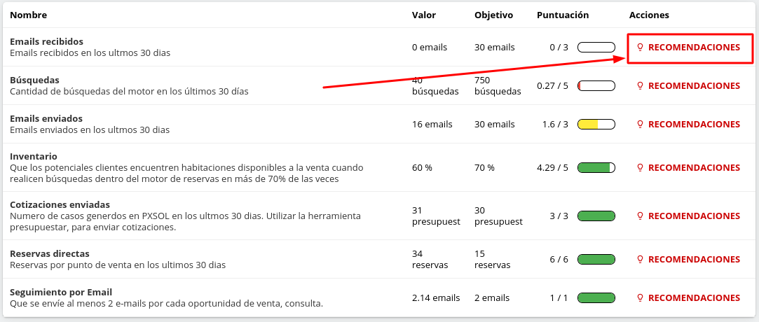 4- Ingresar a Recomendaciones para encontrar sugerencias para mejorar el desempeño de ese indicador