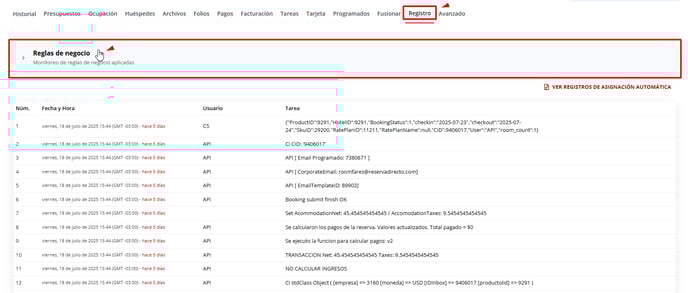 La sección de "Reglas de Negocio" solo aparecerá si se han aplicado reglas a la reserva. En caso de que no se hayan implementado reglas, esta sección no será visible.