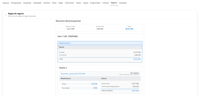 En esta guía se explica cómo visualizar de manera detallada las reglas de negocio que se aplicaron en una reserva.